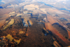 Habrovany. V terénním reliéfu dochované pozůstatky reduty (baterie) z konce 18. stol. Krajina Českého středohoří.