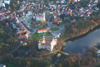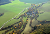 Navigátor: Gojda. Letecké snímkování krajinné památkové zóny Valeč. Podmínky letu: nezakrytá půda; vegetace. Viditelné situace: viditelné struktury; historická architektura; urbánní jednotky.